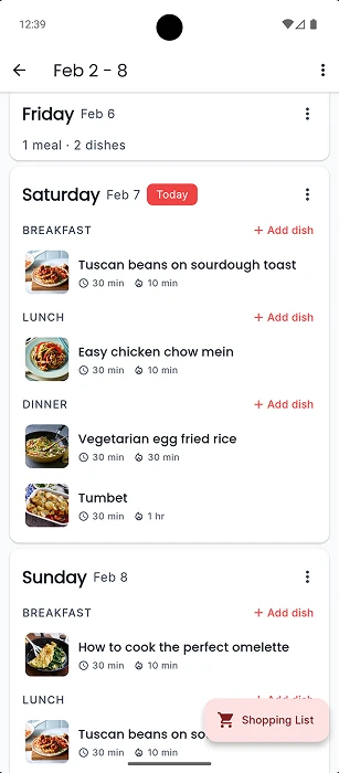 Import recipes from websites or photos, create weekly meal plans, and get a grocery shopping list sorted by category — all in one place.